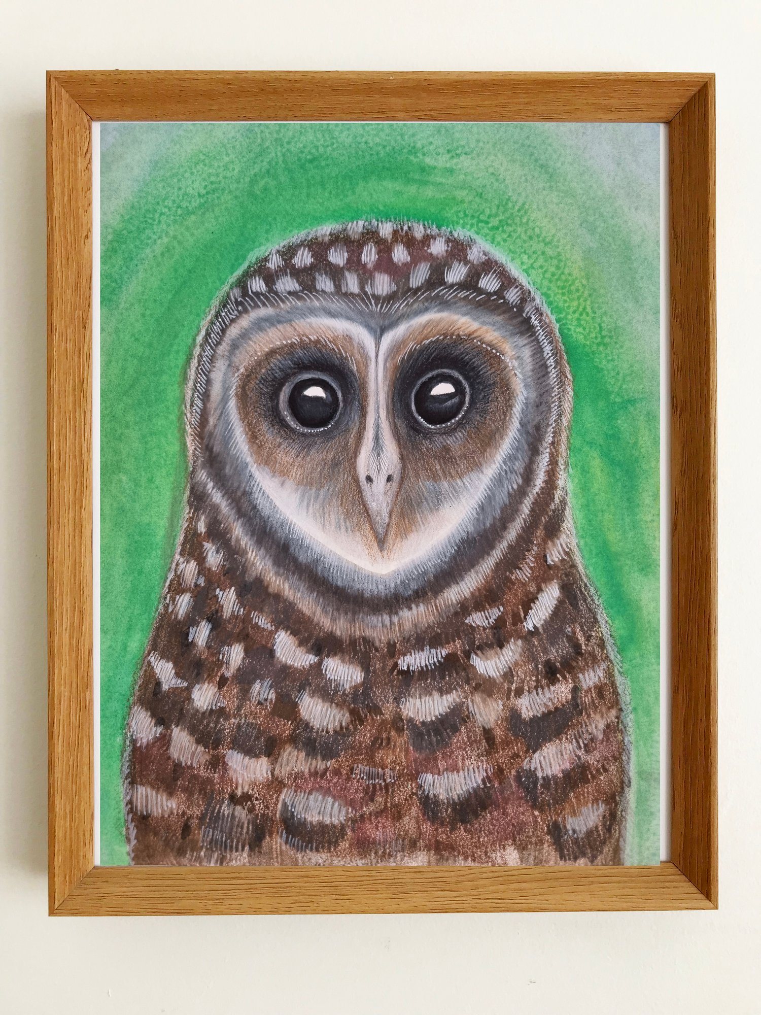 An original watercolour and pencil drawing by Julie McSpedden of the Australian Sooty Owl.