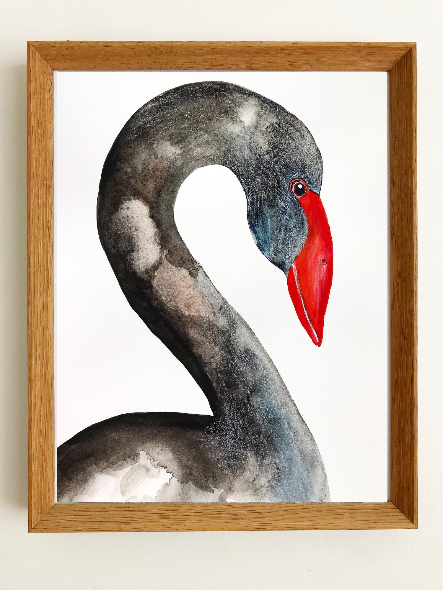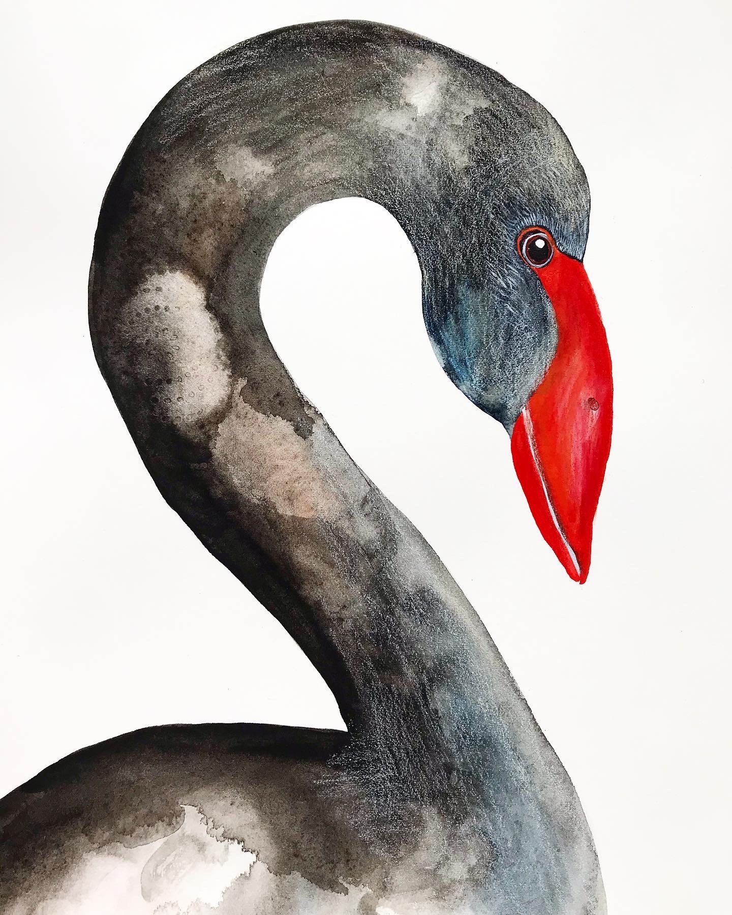 An original watercolour and pencil drawing by Julie McSpedden of the Australian Black Swan.